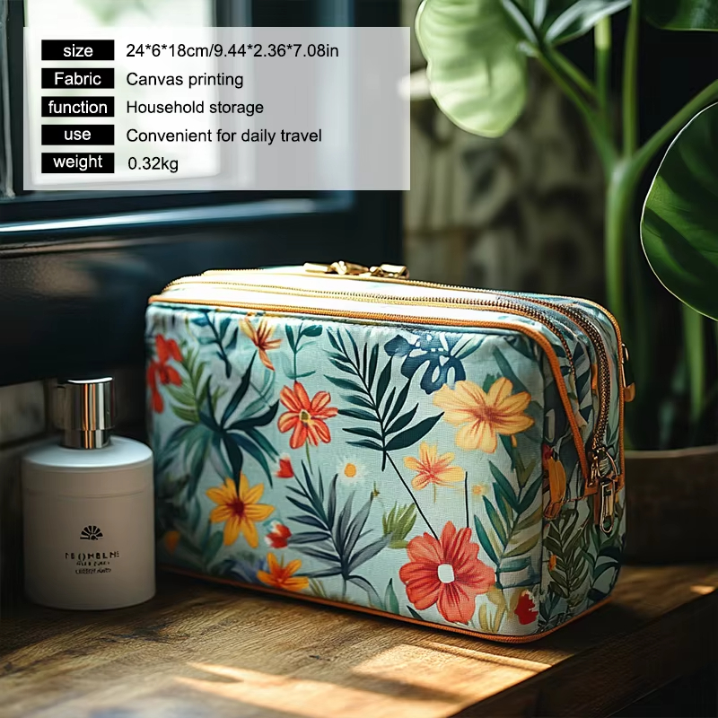 Cette trousse de maquillage est conçue pour un usage quotidien ainsi que pour un voyage pratique. Que vous vous prépariez pour une escapade d'un week-end ou un voyage d'affaires, ce sac garde vos produits de beauté soigneusement organisés et facilement accessibles. L'intérieur spacieux vous permet de ranger du maquillage, des produits de soins de la peau, des articles de toilette et d'autres objets personnels sans tracas. Sa taille compacte le rend idéal pour se glisser dans un bagage, un sac à main ou un bagage à main.