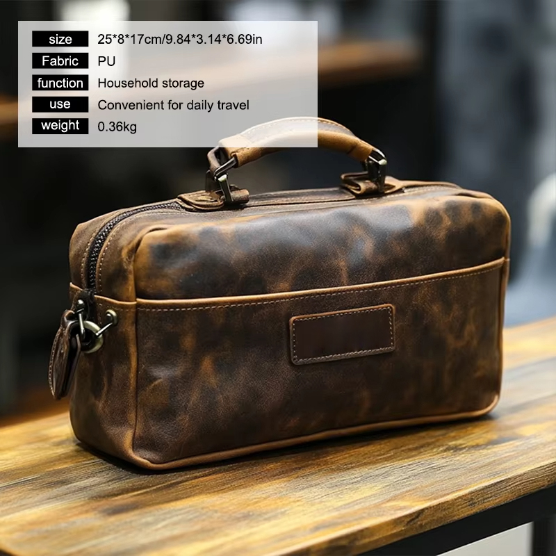 La durabilité du sac cosmétique en cuir de luxe haut de gamme est l’une de ses nombreuses caractéristiques attrayantes. Fabriqué en cuir PU de haute qualité, il résiste aux taches et à l'eau, ce qui le rend facile à nettoyer et à entretenir. Un essuyage rapide avec un chiffon humide suffit pour garder le sac impeccable. Sa longévité garantit que vous profiterez de sa sensation luxueuse et de son côté pratique pendant de nombreuses années, ce qui en fait un investissement judicieux pour quiconque recherche une solution de stockage fiable et élégante.
