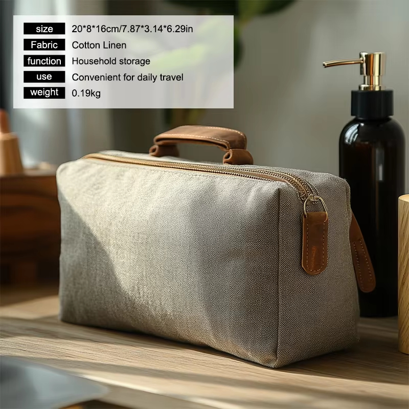 Fabriquée à partir d'un tissu en coton et lin de qualité supérieure, cette trousse à cosmétiques est à la fois durable et légère. Les fibres naturelles du lin de coton sont douces au toucher, mais suffisamment résistantes pour résister à une utilisation quotidienne. Le tissu ajoute également une touche de sophistication au design du sac, ce qui en fait non seulement une solution de rangement fonctionnelle, mais également un accessoire élégant. Le matériau est respirant, ce qui aide à prévenir l’accumulation d’humidité et à garder vos articles frais et secs.