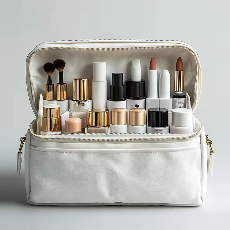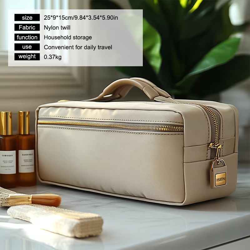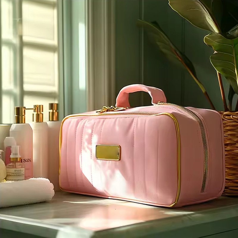 L’une des caractéristiques remarquables de la trousse de rangement en polyester pour les voyages est sa taille compacte, ce qui la rend idéale pour les voyages quotidiens. Que vous vous rendiez au bureau, partiez en week-end ou embarquiez pour un voyage plus long, ce sac se glisse confortablement dans vos bagages, votre sac à dos ou votre bagage à main. Les compartiments bien organisés à l'intérieur vous permettent de stocker facilement des cosmétiques, des produits de soins de la peau, des articles de toilette et d'autres objets personnels, garantissant ainsi un accès rapide lorsque vous en avez besoin.