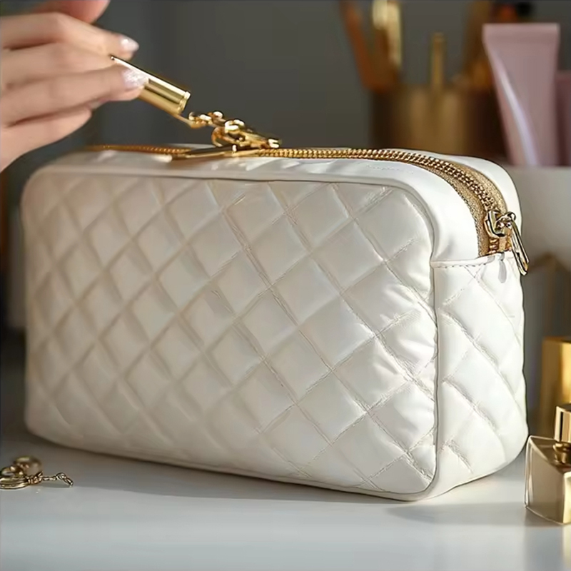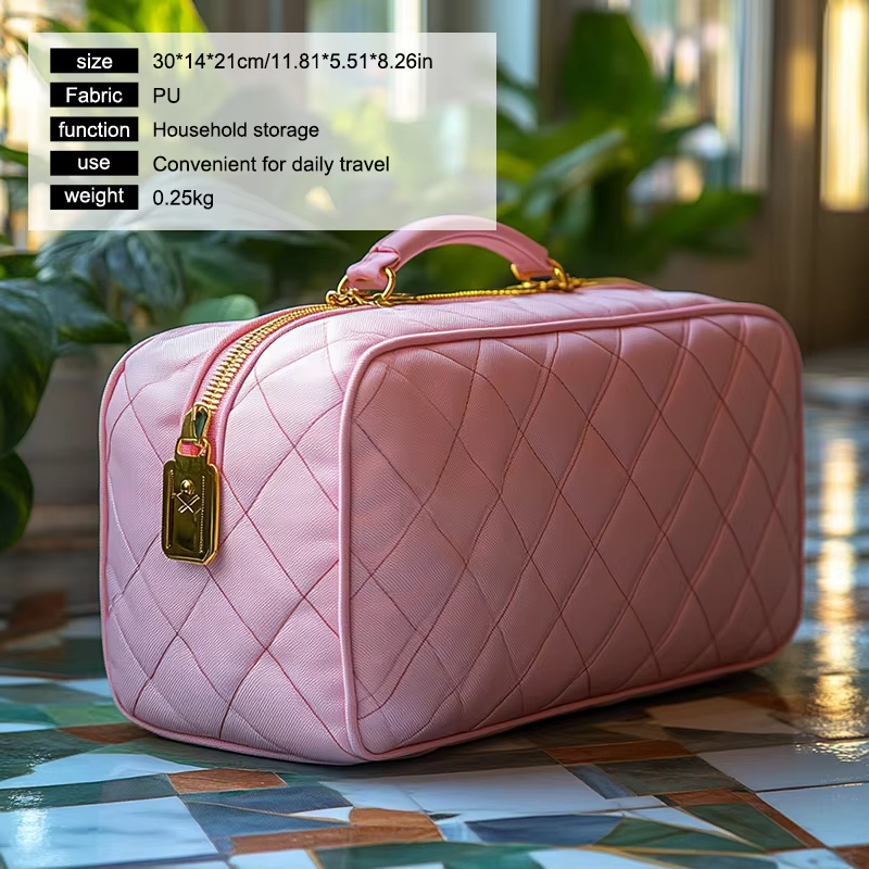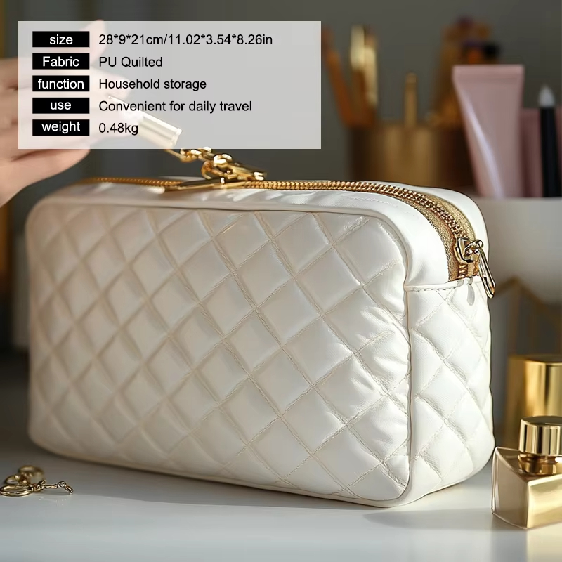 Taille idéale pour un usage quotidien, cette trousse à cosmétiques est suffisamment grande pour contenir une variété d'objets personnels mais suffisamment petite pour être transportée sans effort. Sa conception pratique le rend facile à entretenir – il suffit d'essuyer la surface lorsque cela est nécessaire, garantissant ainsi que le sac reste frais et neuf. Que vous soyez à la maison ou en voyage, cette trousse de rangement pour articles de toilette sera toujours prête à vous servir.