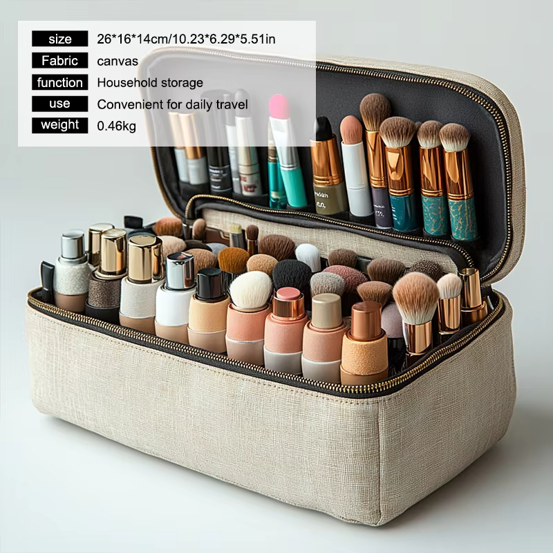 Cette trousse de maquillage est un compagnon idéal pour les déplacements quotidiens. Avec sa taille compacte et son design léger, il se glisse facilement dans un bagage ou un sac à dos sans prendre trop de place. Le sac de rangement pour articles de toilette garde tous vos essentiels organisés, afin que vous puissiez y accéder rapidement en cas de besoin. Du dentifrice et du shampoing aux produits de maquillage et de soins de la peau, ce sac garantit que vos articles sont stockés en toute sécurité et faciles à trouver, rendant votre expérience de voyage plus pratique et sans stress.