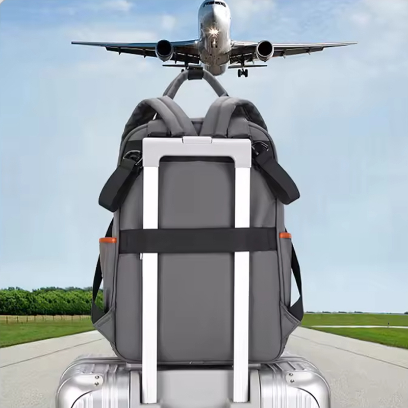 Pour les parents toujours en déplacement, le sac à langer de rangement portable pour fournitures pour bébé offre des fonctionnalités supplémentaires adaptées aux voyages. Il dispose d'une sangle de poussette intégrée, qui vous permet de l'attacher à la poussette pour un confort mains libres. Cela facilite la gestion de votre bébé et de tout votre équipement, en particulier lorsque vous naviguez dans des zones bondées ou que vous prenez les transports en commun.