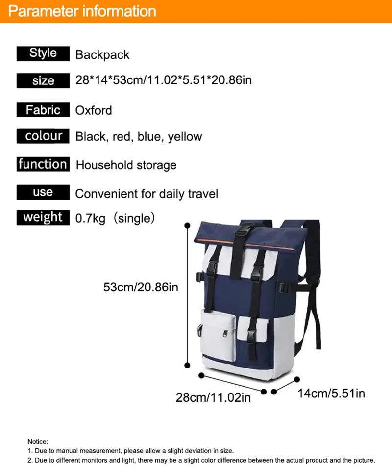 Le sac à dos étanche classique pour ordinateur portable à enroulement de voyage est aussi élégant que pratique. Son design élégant et petit se marie bien avec les tenues décontractées et professionnelles, ce qui le rend adapté à un large éventail d'occasions. Que vous l'utilisiez pour une escapade d'un week-end, un trajet quotidien ou comme bagage à main pour voyager en avion, ce sac à dos s'intégrera parfaitement à votre style de vie.
